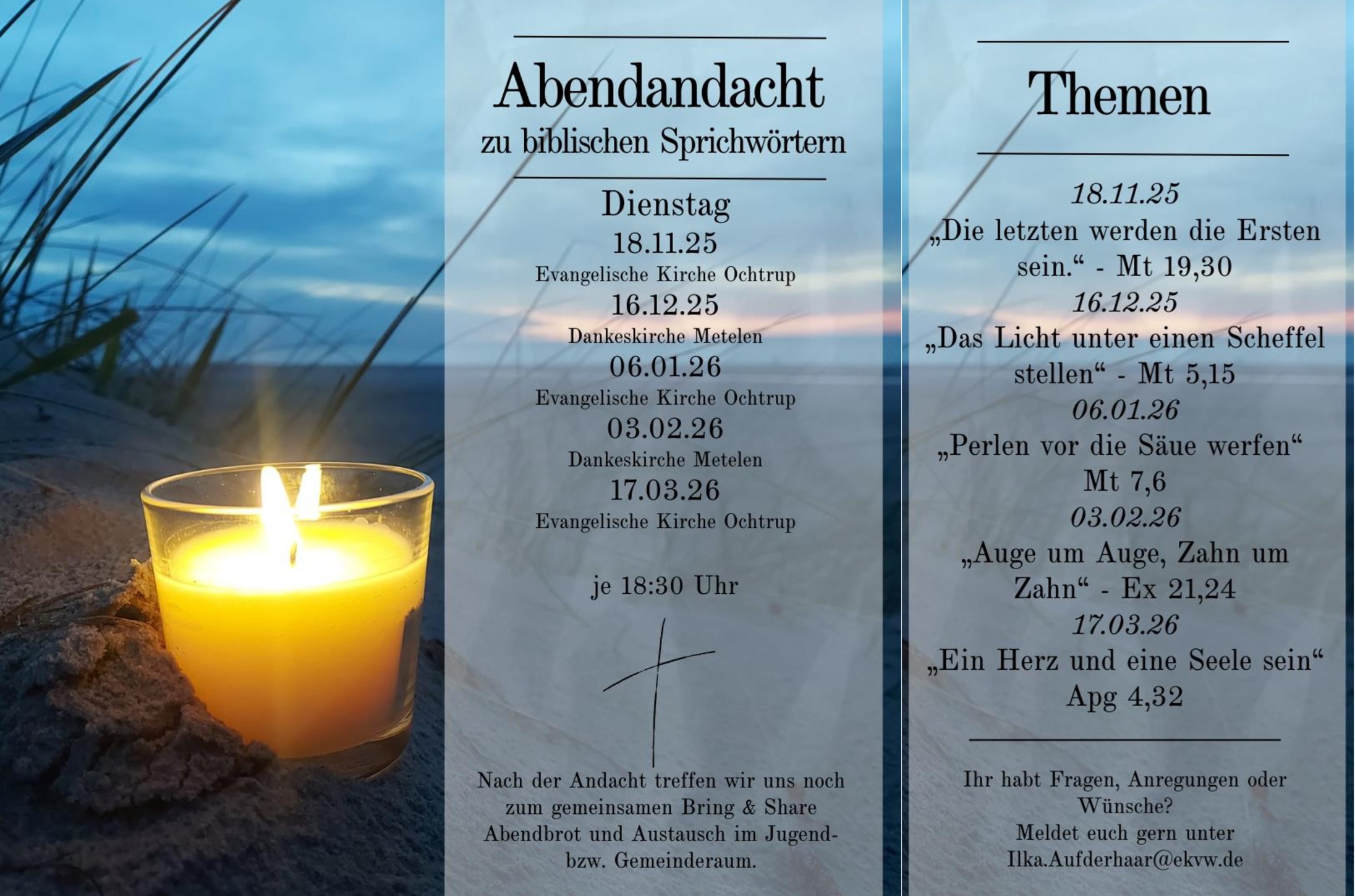Am Abend des Reformationstages, 31.10. 2025 um 19 Uhr, laden wir herzlich zum festlichen Gottesdienst in die Große Kirche Burgsteinfurt ein. Unter dem Leitwort „Einen anderen Grund kann niemand legen außer dem, der gelegt ist, welcher ist Jesus Christus.“ (1. […]