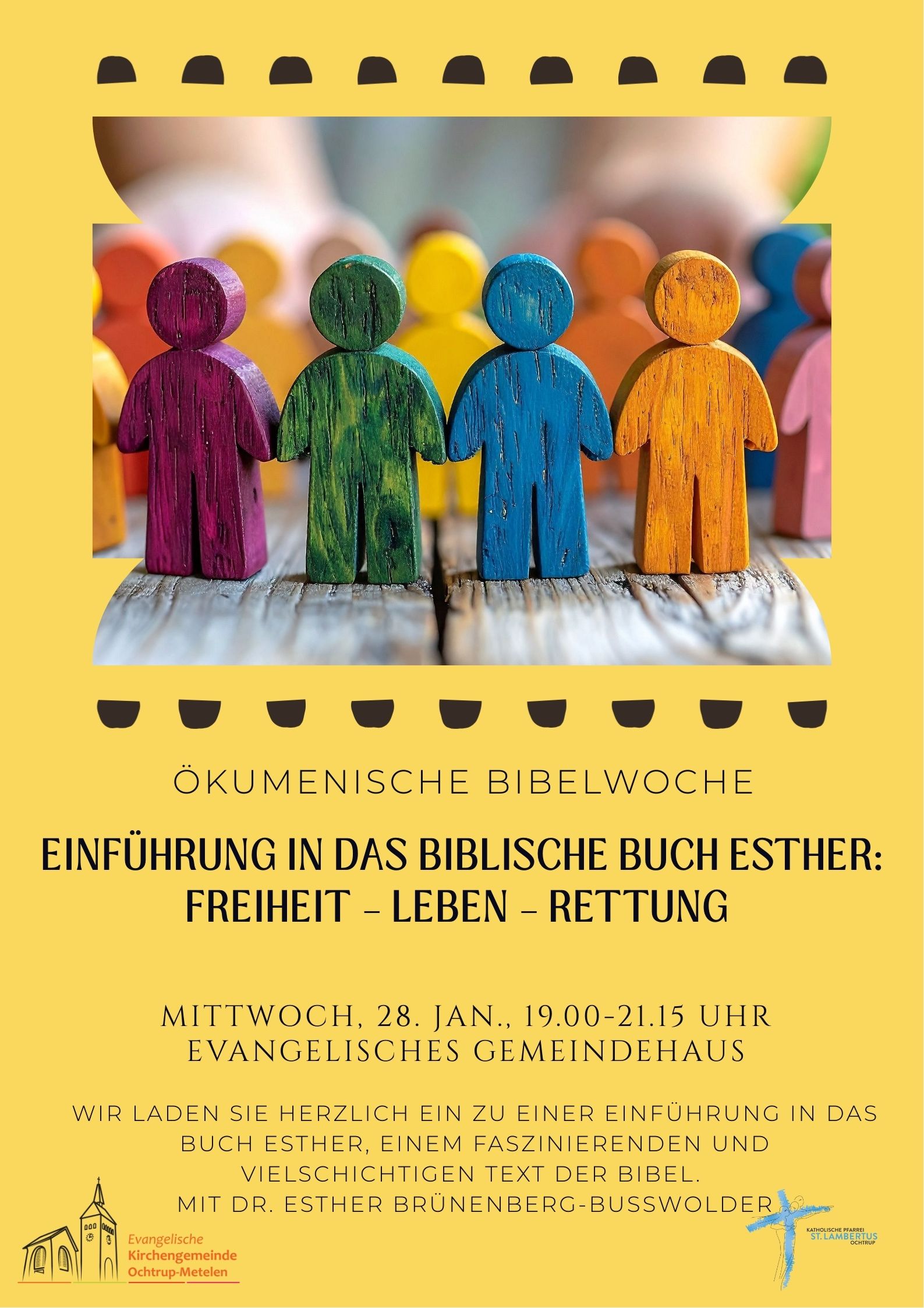 Am Mittwoch, 28. Januar 2026, laden wir herzlich ein zu einer Einführung in das biblische Buch Esther. Die Veranstaltung findet von 19.00 bis 21.15 Uhr im Evangelischen Gemeindehaus Ochtrup statt. Das Buch Esther ist ein faszinierender und vielschichtiger Text der […]