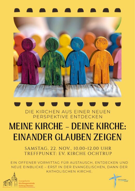 In ökumenischer Verbundenheit laden die evangelische und die katholische Kirchengemeinde dazu ein, unsere Kirchen aus neuen Blickwinkeln zu betrachten. Durch gegenseitiges Erzählen und Zuhören möchten wir persönliche Erfahrungen, Glaubensgeschichten und besondere Orte miteinander teilen.