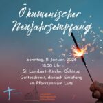 Als Christinnen und Christen wollen wir das neue Jahr gemeinsam beginnen. Dazu laden wir herzlich ein zum Ökumenischen Gottesdienst am kommenden Sonntag, 11. Januar, um 18.00 Uhr in die St.-Lamberti-Kirche. (An diesem Sonntag findet in der evangelischen Kirche morgens kein […]